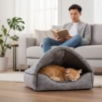 Made with super-soft polyester fibers, the surface naturally attracts hair and dander, helping keep shedding contained while maintaining a comfortable lounging area. Lightweight and easy to move, this hooded bed fits seamlessly into any indoor space with its neutral color design.